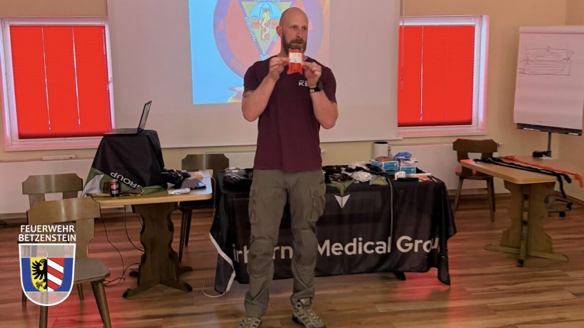 Am Samstag den 23.08.25 hatten 6 Mitglieder der aktiven Wehr die Möglichkeit, zusammen mit jeweils 5 Kameradinnen und Kameraden der Feuerwehren aus Ottenhof-Bernheck und Plech einen „Massive Bleeding Kurs“ zu besuchen. Der Kurs fand in den Schulungsräumen des Feuerwehrgerätehauses Betzenstein statt. Als Gastdozent durfte man die Airborne Medical Group begrüßen, welche sich seit Jahren mit dem Thema taktische Medizin beschäftigt. Lerninhalt des 1 tägigen Kurses war die Vorgehensweise bei starken, lebensbedrohlichen Blutungen, Verhalten in Extremsituationen und das auffrischen des Wissens rund ums Thema Erste Hilfe.