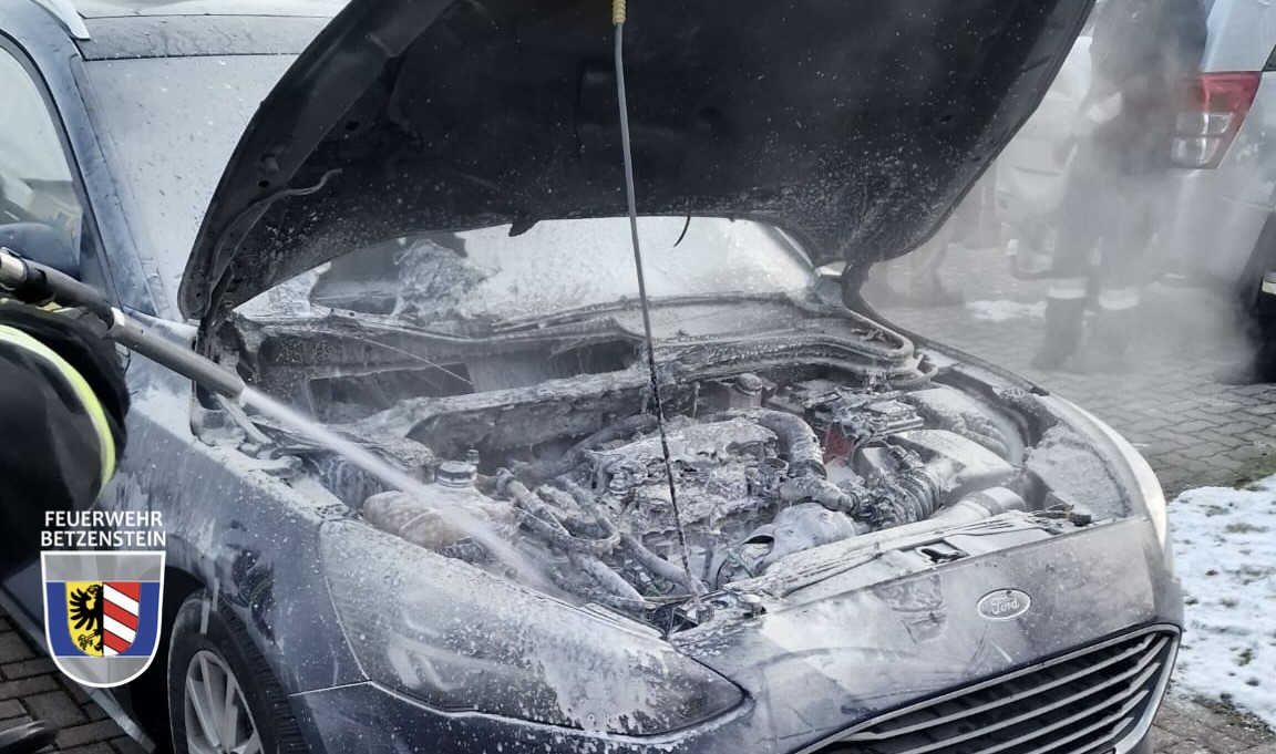Vor Ort kam es im Motorraum zu einen Brand. Wir löschten den Motor mit den HiCAFS ab und kontrollierten ihn mit der Wärmebildkamera.